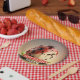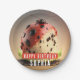 Geburtstagspapier-Teller mit einer Ladybug-Geburtstagstorte zum Thema "Geburtstag". Und "Happy Birthday", ein mutiger Schriftart. Passen Sie es an, indem Sie Ihren Namen hinzufügen.