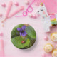 Ladybug über süße Violettsorten-Blume Pappteller