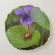Ladybug über süße Violettsorten-Blume Rundes Kissen