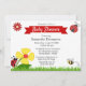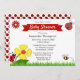 Niedlicher Damenbug und Bienenduscheinladung mit einem Ladybug, der auf eine gelbe Blume klettert. Kleine Biene, die in grünem Gras wimmelt. Auf der Kartenrückseite sind Damenwanzen. Passen Sie Ihre Party an.