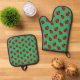 Ladybugs Design Oven Mitt und Pot Holder Set mit anpassbarer Hintergrundfarbe.