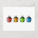 Vier niedliche kleine Ladybugs stehend in einer Reihe.