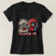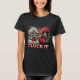 Zwei farbenfrohe, kartoonische Hühner mit übertriebenen Merkmalen stehen vor einem dunklen Hintergrund. Unter ihnen fügt der Text "CLUCK IT!" eine humorvolle Touch hinzu.