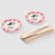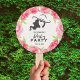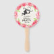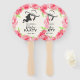 Ein Handventilator mit einer Dame mit einem Hut mit Ihrem Namen und Party-Datum mit einem Rand von Rose vor einem leichten Elfenbeinhintergrund. Eine unterhaltsame Möglichkeit, cool bleibe. PASSENDE Artikel in unserer Sammlung.