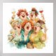 Eine fröhliche, humorvolle Illustration von fünf fabelhaften Frauen, die einen belebten Toast teilen, voller Lachen und Kameradschaft. Ihre farbenfrohe Ausstattung, ausdrucksvolle Gesichter und überdimensionale Brillen erwecken Freundschaft und Spaß. Ideal für Weinliebhaber, Mädchenabende oder Kunstfans, die die Schönheit der gemeinsamen Freude und unvergesslichen Momente schätzen.
