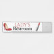 Der Restroomtür Dame Namensschild mit Grafiken eines roten Paares des hohen Heelses und des Rohrs von rotem Lippenstift. Roter und schwarzer kundenspezifischer Text kann personalisiert sein, zu lesen, was Sie wollen.