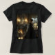 Von der "Cassandra Thinking" Range Black-T-Shirt, Dame in gotischer Umgebung bei Dämmerung, durch einen Kamin Kerzen beleuchtet