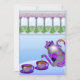 Eine wunderschöne Einladung zum Treffen mit "The Girls": Tee-Party, Quilting Bee, Book Club, Geburtstag oder Madge's Scheidung feiern! Originelle digitale Malerei von Leslie Sigal Javorek aus Buntglasfenster und violettem Blumentee Set mit neuem Jugendstil-Ambiente. Auf der Rückseite, anpassbare Textfelder für Party-Details oder klare Standardtexte, die von Hand auszufüllen sind.