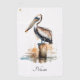 Mit diesem eleganten Golftuch im Stil des Poise of the Pelican bringen Sie ein kuscheliges Küstenstreifen auf das Grün. Ein gediegenes Pelikan steht hoch auf einem Dock, der in sanften Aquarelltönen gestrichen ist, die die Ruhe der Morgenstunden am Meer wecken. Dieses Handtuch ist für Golfspieler gedacht, die sowohl Flair als auch Funktion schätzen. Es verleiht Ihrem Equipment einen besonderen Charakter und behalte den Clubs eine stilvolle Sauberkeit. Das anpassbare Textbanner lasse Ihnen, Ihren Namen, Ihre Initialen oder einen lustigen Satz hinzuzufügen. Es macht es zu einem nachdenklichen Geschenk für Golfliebhaber, die sich auf dem Platz stehend fühlen.