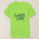 Auf einem T - Shirt, der für Sie und Ihren Partner erworben werden kann, erscheint der Text von Lake Life. Eine Aquarellfeuerszene nimmt den Platz des Buchstaben "A" im See ein.