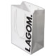 Dieses Geschenksack ist in vielen Produkten erhältlich und zeigt das Wort LAGOM. Lagom (ausgesprochen [lɑ̀ ɡ om]) ist ein schwedisches Wort, das "nur den rechten Betrag" bedeutet. Lagom kann auf alle Situationen angewendet werden, von Lebensmitteln und Getränken bis hin zu Urheberrechten und Kohlendioxidemissionen.