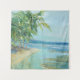 "Blue Coastal Lagoon" von Suzanne Wilkins. Ein ruhiger Strand mit tropischen Bäumen.