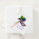Set von 12 quadratischen Gefälligkeitstags mit einem Bild einer wunderschönen lila, grünen und goldenen Satin-Maske auf einem Stick mit Farbabstimmung von Federn und Bändern, und die Phrase "Laissez Les Bon Temps Rouler!" (Lass die Good Times Roll) in lila französischer Schrift auf Weiß. Die Rückseite ist weiß mit anpassbarem Text. Siehe dazu passende Beutel, Rundaufkleber und individuell zugeschnittene Vinyl-Aufkleber. Sehen Sie sich die gesamte Sammlung von Mardi Gras Favor & Gift Tag in den SPECIAL-TOUCHS an. | Abschnitt Gastgeschenke.
