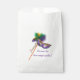 Paket von 50 Weißpapier Gefälligkeitstaschen mit einem Bild einer schönen lila, grünen und goldenen Satin-Maske auf einem Stock mit koordinierenden Federn und Bändern, und der Text "Laissez Les Bon Temps Rouler" (Lass der guten Zeit Roll in Französisch), in lila französischer Schrift. Siehe dazu passende Gefälligkeitstafel, Rundaufkleber und individuell zugeschnittene Vinyl-Aufkleber. Sehen Sie sich die gesamte Mardi Gras Favor Bag Kollektion in den SPEZIELLEN TOUCHS an. | Abschnitt Gastgeschenke.