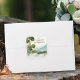 Lake Evergreen Wassercolor Hochzeitsaufkleber mit Braut- und Bräutigernamen und idyllische landschaftliche Landschaft. Wasserfarbene Landschaft mit immergrünen Bäumen und Grünpflanzen, blauen Bergen und einem ruhigen See unter einem klaren blauen Himmel. Das Design ist in staubigen Blau-, Winkeln- und Grüntönen gehalten und mit moderner Typografie versehen. Bitte stöbern Sie in meiner Evergreen Kollektion nach passenden Artikeln oder schreiben Sie mir, um die Vorlagen zu erstellen, die Sie benötigen.