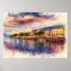A dreamy watercolor splash captures the soul of Lake Garda — where pastel-hued buildings meet tranquil waters under a golden sunset. This expressive piece blends architectural charm with nature’s serenity, inviting viewers into a moment of lakeside calm and Italian elegance.