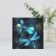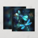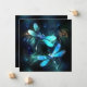 Zwei lichtdurchflutete, türkisfarbene, kunstvoll gezeichnet Libellen mit lichtdurchlässigem Sealgen und Glühwürmchen im Hintergrund. Glühende Libelle.