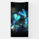 Zwei lichtdurchflutete, türkisfarbene, kunstvoll gezeichnet Libellen mit lichtdurchlässigem Sealgen und Glühwürmchen im Hintergrund. Glühende Libelle.