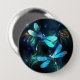 Zwei lichtdurchflutete, türkisfarbene, kunstvoll gezeichnet Libellen mit lichtdurchlässigem Sealgen und Glühwürmchen im Hintergrund. Glühende Libelle.