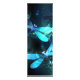 Zwei lichtdurchflutete, türkisfarbene, kunstvoll gezeichnet Libellen mit lichtdurchlässigem Sealgen und Glühwürmchen im Hintergrund. Glühende Libelle.