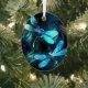 Zwei lichtdurchflutete, türkisfarbene, kunstvoll gezeichnet Libellen mit lichtdurchlässigem Sealgen und Glühwürmchen im Hintergrund. Glühende Libelle.