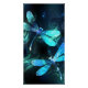 Zwei lichtdurchflutete, türkisfarbene, kunstvoll gezeichnet Libellen mit lichtdurchlässigem Sealgen und Glühwürmchen im Hintergrund. Glühende Libelle.