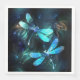 Zwei lichtdurchflutete, türkisfarbene, kunstvoll gezeichnet Libellen mit lichtdurchlässigem Sealgen und Glühwürmchen im Hintergrund. Glühende Libelle.