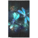 Zwei lichtdurchflutete, türkisfarbene, kunstvoll gezeichnet Libellen mit lichtdurchlässigem Sealgen und Glühwürmchen im Hintergrund. Glühende Libelle.