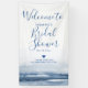 Mit diesem auffälligen Willkommensbanner erwecken Sie Ihren Brautparty-Gästen einen einzigartigen Eindruck. Es zeichnet sich durch eine Aquarellfarben-farbene, blaue Farbkulisse aus. Ihre Details liegen in der Mitte in einer dunklen Marinefarbene, die dem Aquarellbild entspricht. Alle Elemente dieses Artikels sind freigeschaltet und anpassbar, also viel Spaß beim Erstellen und eigenen machen.