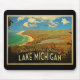 Diese wunderschöne Seelandschaft des Michigan-Sees sagt "Die große Schönheit der Natur". Herbstlaube und das blaue Grün des Großen Sees mit Bäumen, die von den Rändern ausgehen.