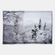 Ein Foto, das nur einen Blick auf den Bergsee durch schneebedeckte Tannenbäume zeigt. Dieses Landschaftsbild wird digital so bearbeitet, dass es wie eine Wasserfarbe aussieht. Der Nojiri-See ist ein Gletschersee in den japanischen Alpen. Es ist ein beliebter Ferienort im Sommer und im Winter, und die Winter-Olympia 1998 fanden in Nagano und den umliegenden Skipisten statt. Obwohl das Klima gemäßigt ist und der See selten überfriert, sind die Berge im Winter meist mit mehreren Füßen Schnee bedeckt.