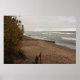Eine launische Ansicht der Uferlinie des Lake Superior, während sturmgetriebene Wellen auf einen stillen Sandstrand in der Nähe von Calumet Waterworks rollen. Der gedämpfte Himmel und das windgepeitschte Wasser schaffen eine rauhe und atmosphärische Great Lakes-Szene, die perfekt für küsten- und naturinspirierte Dekorationen ist.