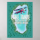 Lake Tahoe USA Karte Reiseplakat (Lake Tahoe ist ein großer Süßwassersee im Sierra Nevada Gebirge, die sich über die Grenze von Kalifornien und Nevada erstreckt). In einem Vintagen Stil präsentiert.
