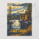 Eine faszinierende Vintage Darstellung des Tahoer Sees, eingebettet in die Sierra Nevada Berge an der Grenze zu Kalifornien und Nevada. Das Design hebt das kristallklare Wasser des Sees hervor, umgeben von mächtigen Kiefernwäldern und majestätischen Berggipfeln. Das in nostalgischem Stil gestaltete Kunstwerk vereint die ruhige Schönheit des Tahoe-Sees und die unberührte Natur und lädt die Zuschauer ein, die ruhige Atmosphäre des Tahoe-Sees zu genießen.