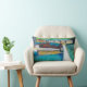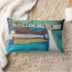Dieses hell farbige Kissen beglückwünscht jeden möglichen Raum. Das Bild ist eine abstrakte Landschaft, in den Schatten der neutraler Personen, Blues, Grüntöne. Stellen Sie sich das Dock und das Haus vor, während Sie in einem Schwimmen mitten in dem See an einem heißen Sommertag sind.