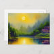 Digitale Kunst Postkarte bietet Seeszene mit Reflexion im Wasser, üppige Bäume und ein großes Seehaus.