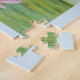 11" x 14" Puzzle mit einem Bild der Hindu-Göttin Lakshmi in Rosa und Gold gekleidet und in einem rosa Lotus stehend. Blauer Rand. Hinter ihr liegt ein Wasserfall und im Fluss sind Schwäne und ein weißer Elefant mit einem umdrehten Kofferraum, der mit einem Blumenlei geschmückt ist.