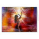 Weiblicher sinnlicher Tänzer mit den Händen gegen roten und orange abstrakten Hintergrund. Durch Daniel B. Holeman.