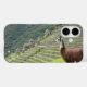 Llama, der die Stufen von Machu Picchu in Peru besichtigt.
