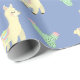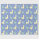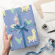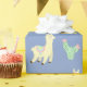 Niedliches Lamamuster mit Kaktus hinter blauem Hintergrund. Lama hat einen niedlichen bunten Sattel. Wenn ein Kaktus nach einem Lama kommt.
