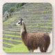 Llama, der die Stufen von Machu Picchu in Peru besichtigt.