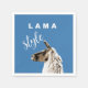 Lama-Portrait auf blauem Hintergrund und weißer Text "Lama Style"