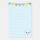 Niedlicher Lama-Cartoon und farbenfrohe Bänder und Fahnen auf hellblauen To Do List-Noten. Alle Farbtöne sind mit der Farbe Rot, der Liebe, verknüpft!