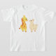 Fügen Sie einen wenig Spaß dem Tag Ihr Kindes mit diesem niedlichen Giraffen- und Lama-Shirt hinzu. Die kleine gepunktete Giraffe wird durch das Lama verwirrt, und es scheint des gegenseitigen Gefühls.