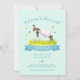 Niedliches Frühlingslamm willkommen bei den Einladungen der Welt, mit einem whimsy Aquarellmalerei eines Babyschafs, das auf einer Blume Wiese mit blauen und gelben Schmetterlingen überspringt. Personalisieren Sie mit Ihren eigenen willkommenen neuen Baby-Party-Details. Niedliches Lamm auf einem Aqua aquamarin blaugrüner Himmelshintergrund. Weitere passende niedliche Schaffleischartikel sind verfügbar. © Einzigartig in Aquarellfarbe gestrichen und von Sarah Trett für www.mylittleeden.com entworfen