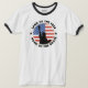 Feiern Sie Sie wohnen in Amerika, das Land vom freien, Zuhause vom tapferen, wenn dieser T - Shirt eine Silhouette kennzeichnet, des Freiheitsstatuen mit der US-Flagge im Hintergrund.
