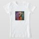 Ein T - Shirt mit dem Text "Free of Land." in Multicolor. Der Text ist fett und dynamisch, mit einer lebhaften Farbpalette in Blau-, Grün- und Gelbtönen. Das Gesamtdesign ist auffällig und energisch und vermittelt ein Gefühl von Freiheit und Unabhängigkeit.