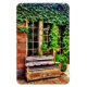 Lassen Sie sich von diesem flexiblen Magneten mit einer hölzernen Holzbank mit Efeu-Weinreben, die auf dem Gebäude dahinter wachsen, verzaubern. Dieses gleiche Design ist auch auf anderen Produkten wie eine Postkarte und andere Geschenke erhältlich. Für mehr einzigartige Ländergeschenke in meinem