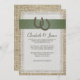 Stoppen Sie, herum zu kaufen und kaufen Sie diese perfekten Hufeisenhochzeitskarten nach rechts diese Minute auf Zazzle. Behalten Sie die D-I-Y Mentalität, indem Sie diesen Einladungskartenentwurf mit irgendwelchen Ihrer Hochzeitsinformationen und -details besonders anfertigen. Retten Sie Ihre Zeit und vermeiden Sie billige Ausrüstungen und bestellen Sie diese Hufeisen, die Einladungen wedding sind, die ein Grafikdesigner schuf.