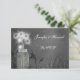 Mason Jar, Hochzeit, Commitment Zeremonie, Antwortkarte. Hübscher kohlegrauer Hintergrund mit Mason Jar gefüllt weißen Dandelion-Puffen. Niedliche Blitzwanzen fliegen in und aus dem Glas. Passen Sie Text und Schriftart an Ihre Veranstaltung oder Ihren Anlass an.